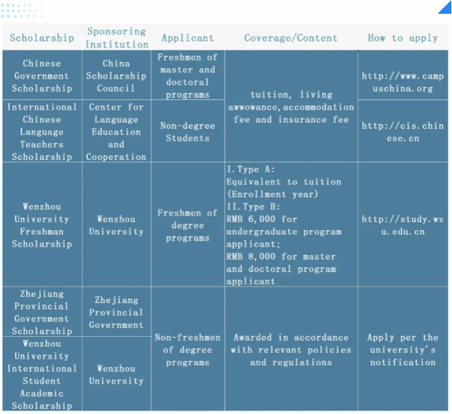 Note: Wenzhou University Freshman Scholarship will be awarded after the students successfully register at the university.
