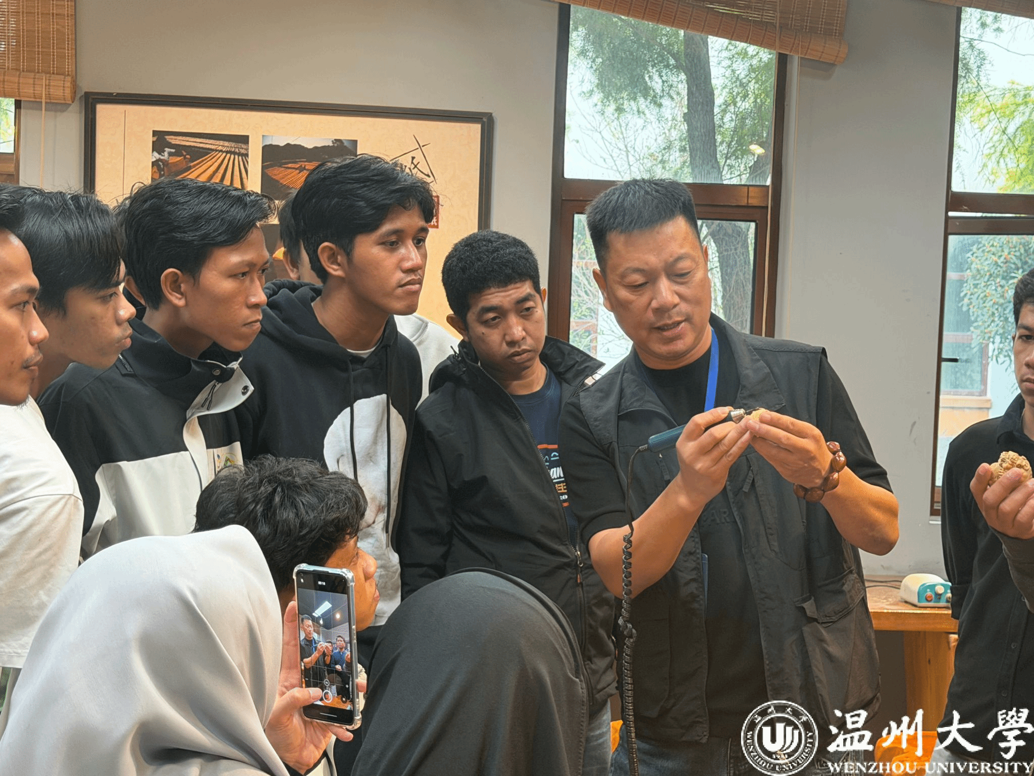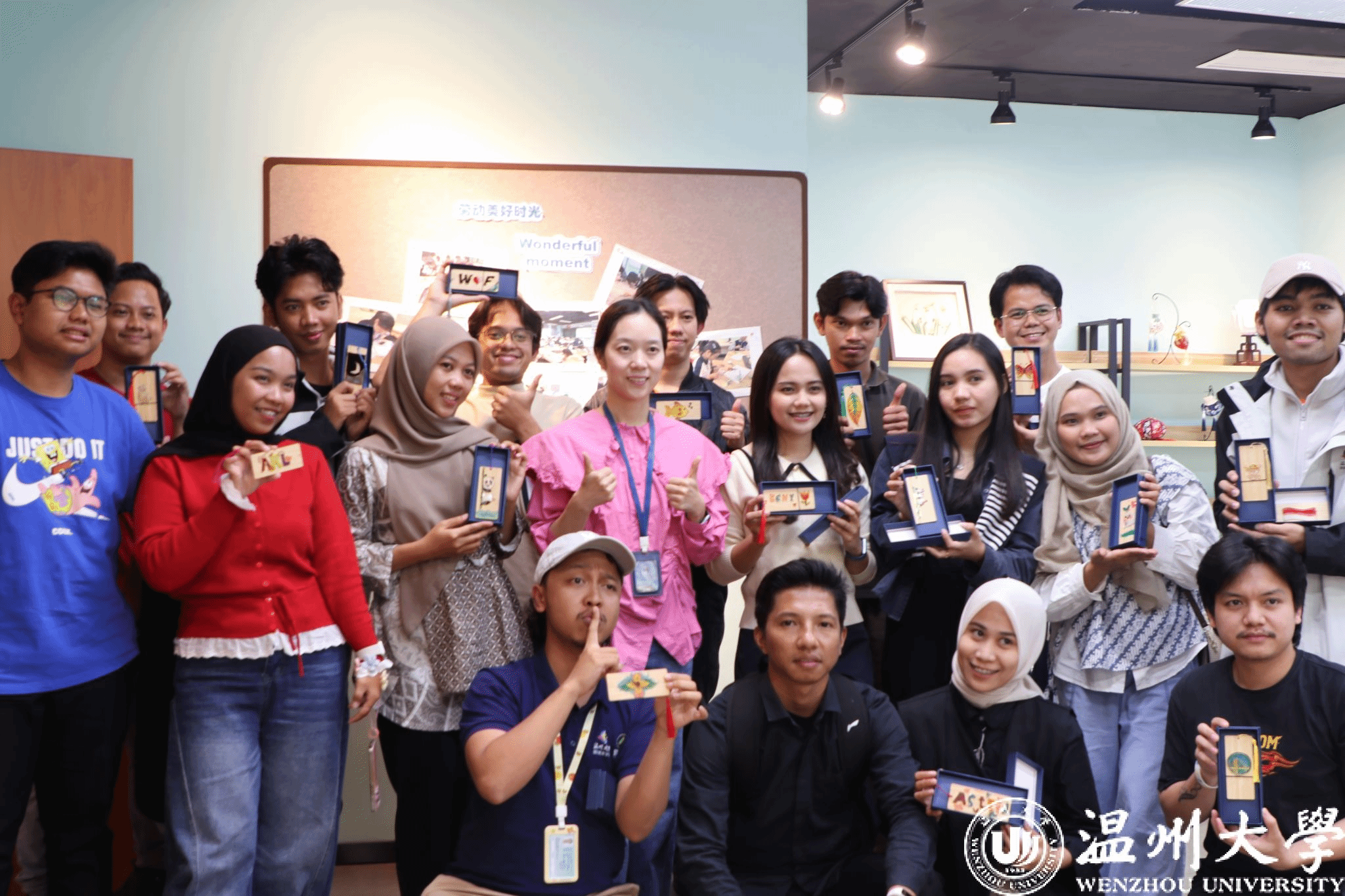 The visit also featured interactive sessions on intangible cultural heritage skills such as boxwood carving, Ōusù clay art, and filigree enamel. Students tried their hands at carving, clay modeling, and wire-inlay work under the guidance of local artisans. “I didn’t expect a piece of wood could turn into something so beautiful. It helped me connect with Wenzhou in a new way,” shared an Indonesian participant.