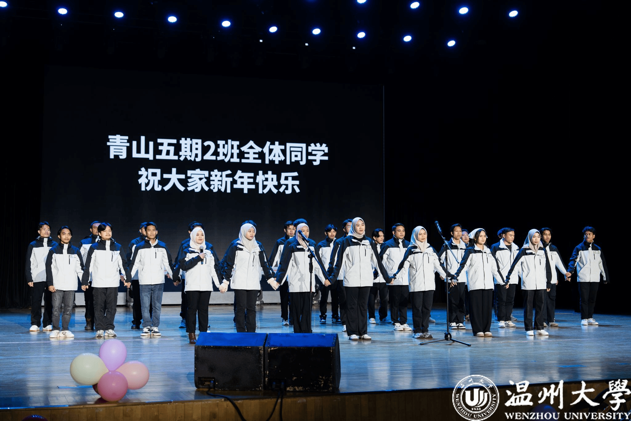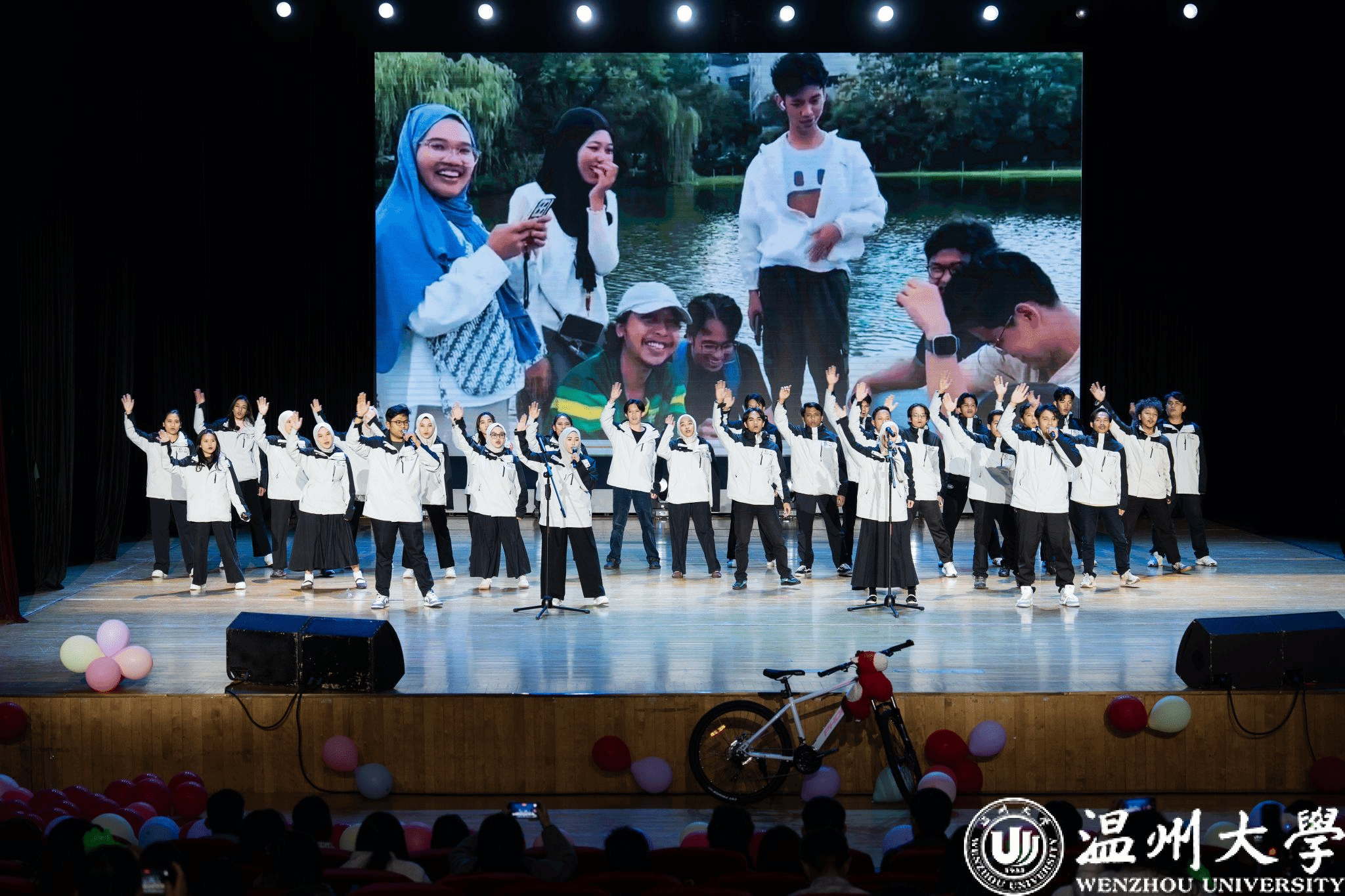 The gala opened with vibrant performances. Indonesian students presented a fusion dance blending Eastern and Western styles, followed by a heartfelt recitation, Wenzhou in My Eyes, and an inspiring chorus of Invisible Wings by the Qingshan Class.