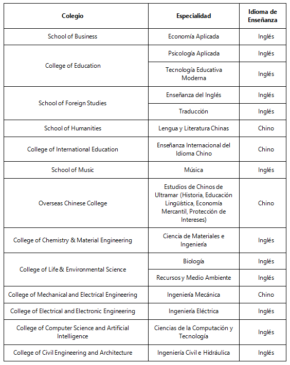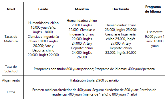1. Programa de grado en Lengua y Literatura Chinas: 18.000 yuan/año.