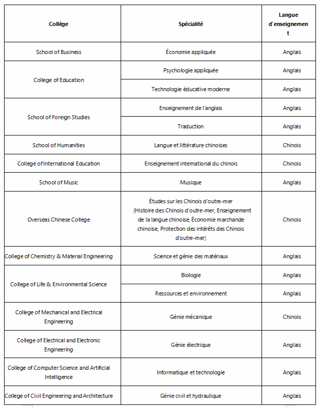 l Programmes en chinois (licence) : HSK niveau 4 minimum.Programmes en chinois (master/doctorat) : HSK niveau 5 minimum.